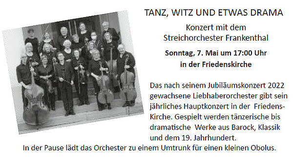 Konzert mit dem Streichorchester Frankenthal Sonntag am 7. Mai 2023 in der Friedenskirche